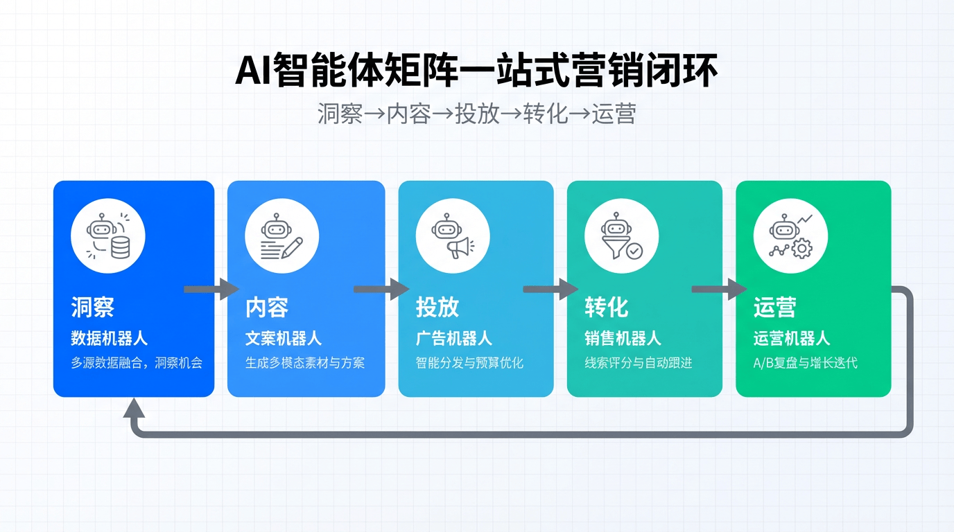 并将高意向客户无缝交代给人类发卖。以及对跨越3000个发卖场景的数据阐发,能高效生成顺应各平台调性的多模态内容;此中,品牌能够辞别高贵的摄影和模特费用,现在正正在被强大的AI营销东西整合为一张协同做和的增加收集。而是由自从的智能体(Agent)驱动的全链闭环。企业的焦点合作力不再仅仅是品牌声量或渠道笼盖,将企业的创意产能提拔了数个量级,企业增加的鸿沟不再由人力或预算决定,例如?
