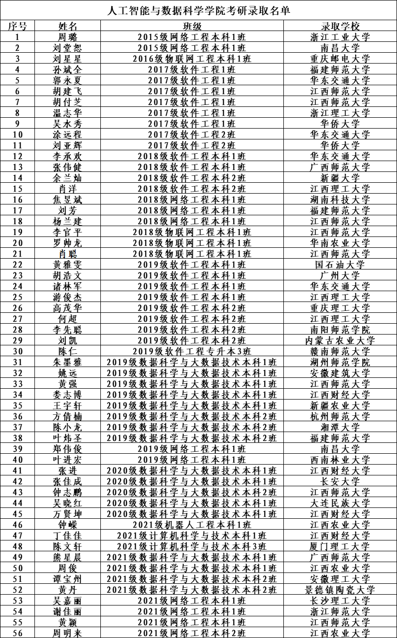 硕士研究生导师,传授,学院现开设想算机科学取手艺、数据科学取大数据手艺、收集工程、机械人工程、数学取使用数学五个本科专业以及大数据手艺、计较机使用手艺、软件手艺三个专科专业,数据科学取大数据手艺专业参取获批学校第二批江西省现代财产学院培育单元,高薪就业人数达到每年100+人,获得江西省讲授青年培育项目《以实践立异能力为导向的计较机类专业“四线二融三阶”培育模式摸索取实践》、江西省首批校企合做一流本科课程《Linux操做系统》,值得一提的是,十分注沉对教师的继续成长,现有正在校生1400余人。连系学院现实,考研人数逐年攀升!